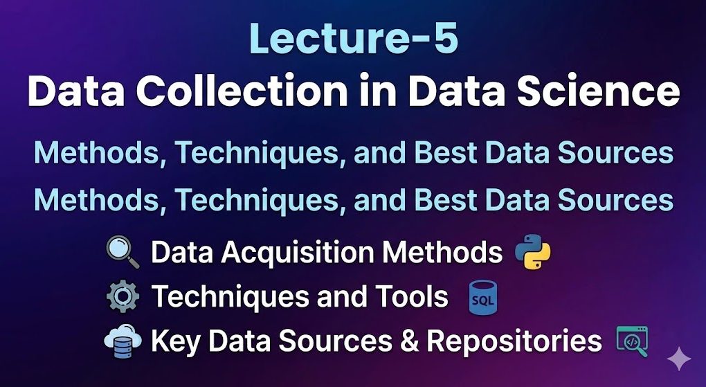 Learn how data is collected in Data Science using databases, APIs, web scraping, public datasets, and file formats. This beginner-friendly guide explains primary vs secondary data sources, data collection methods, and essential tools for students.